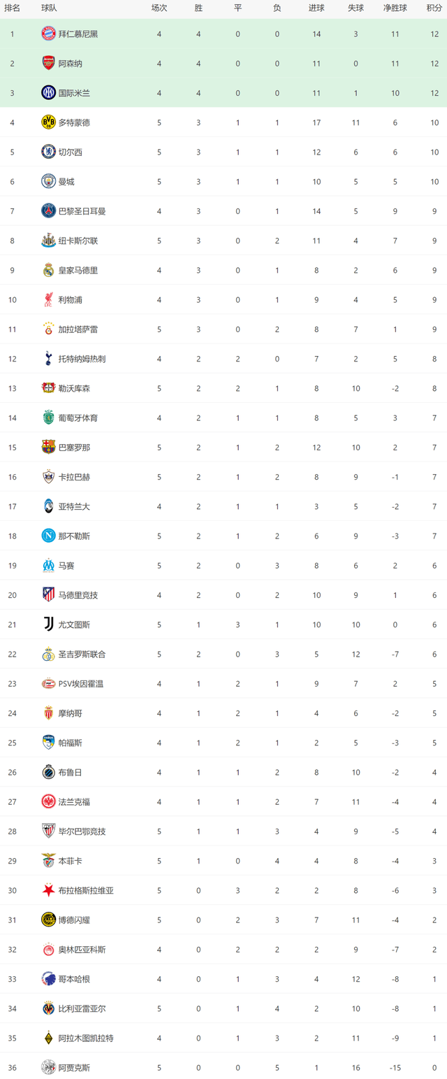 此役拿到3分之后,本菲卡本赛季欧冠前5轮踢完,终于有3分在手,他们也摆脱了垫底的位置,排名升上第29位,距离附加赛区,只有2分的差距,这家葡超豪门,也看到了竞争附加赛席位的希望。