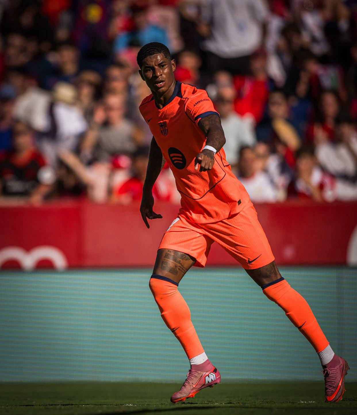 比赛开始后,塞维利亚展现出强劲攻势,第10分钟,阿劳霍在禁区内犯规绊倒了罗梅罗,点球!36岁的桑切斯操刀主罚,毫不留情地命中,为塞维利亚打进本赛季第二个联赛进球,让比分变成1-0。塞维利亚继续压制,巴塞罗那无法抵挡。第37分钟,巴尔加斯传中,罗梅罗轻松破门,帮助塞维利亚扩大领先。尽管巴萨后来有几次机会,但只在上半场补时阶段由拉什福德攻入一球。