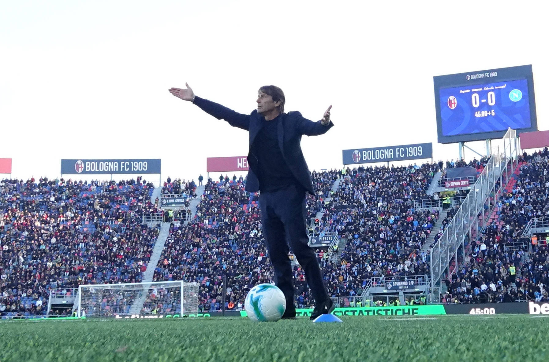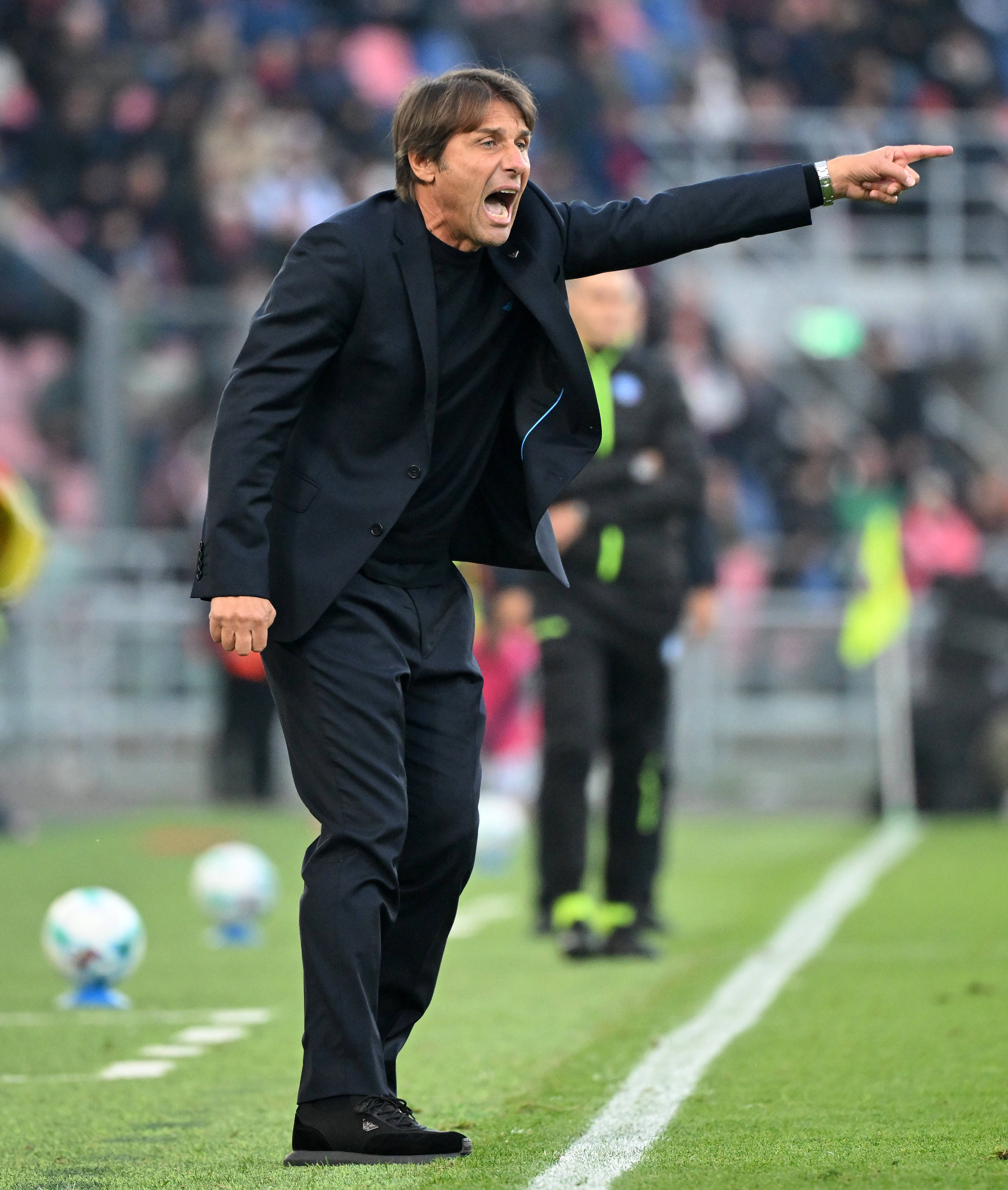 11月9日,那不勒斯队主教练孔蒂在场边指挥。 新华社发(阿尔贝托·林格利亚摄)