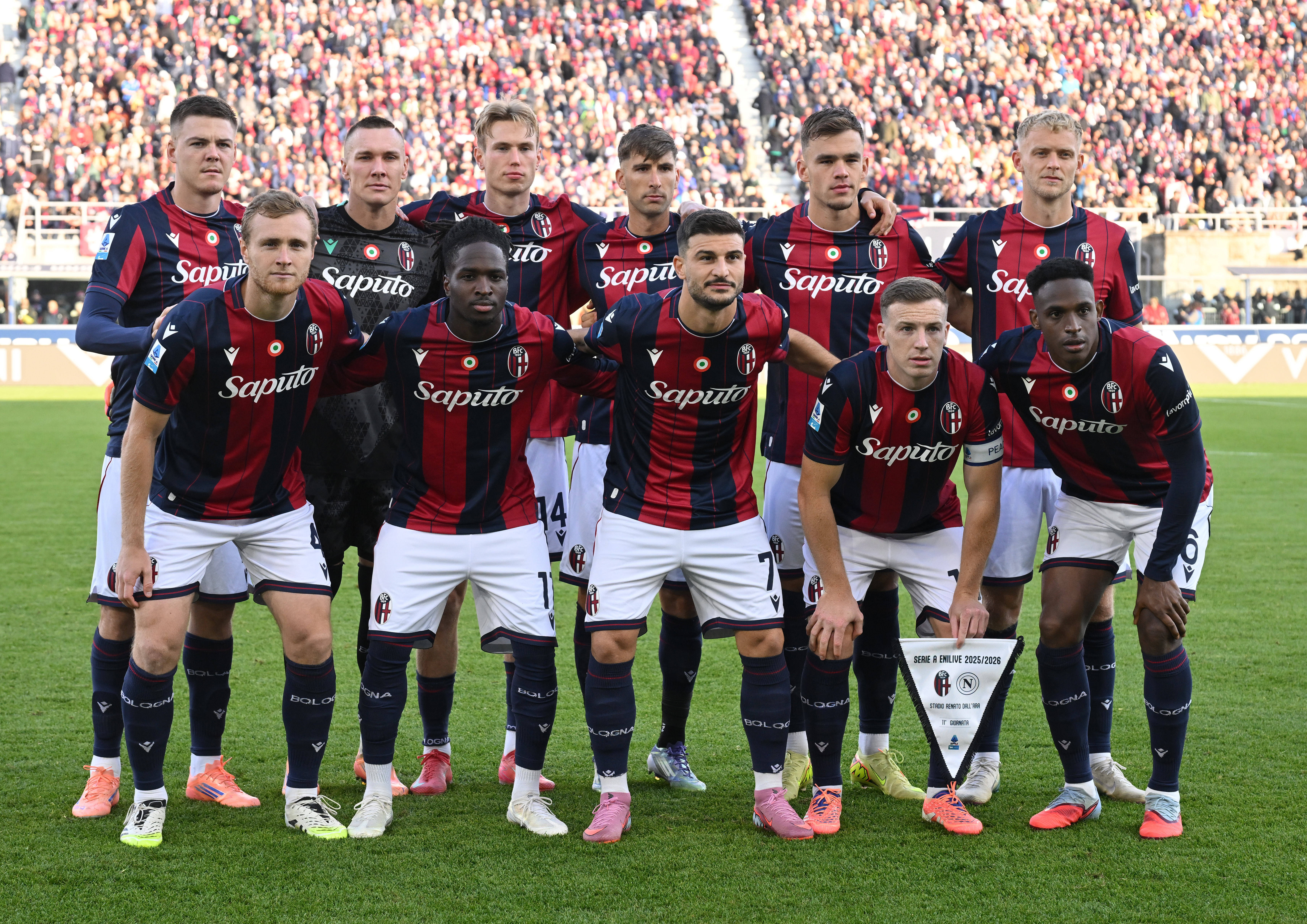 11月9日,博洛尼亚队首发球员在赛前合影。 新华社发(阿尔贝托·林格利亚摄)
