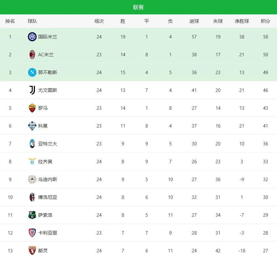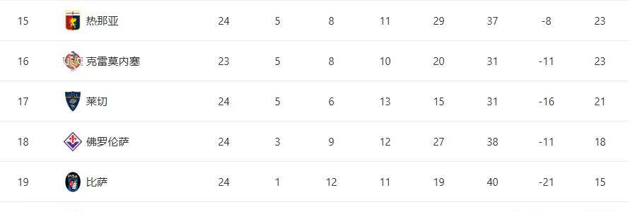 此外,保级组的莱切也传来好消息,主场以2-1击败乌迪内斯,进一步增强了留在意甲的信心。