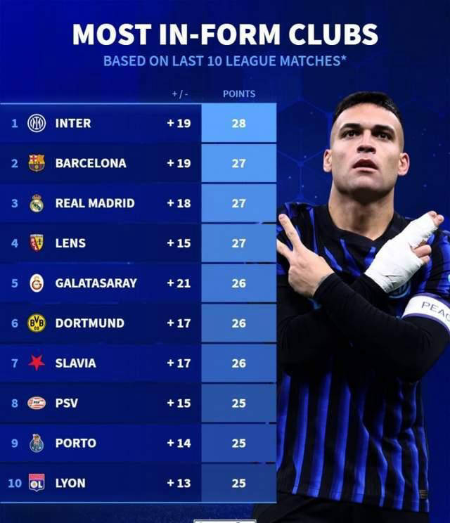德国转会市场公布的数据显示,欧洲前十级联赛球队近10轮比赛的积分排行中,国际米兰以28分稳居榜首,体现了恐怖而稳定的抢分势头。紧随其后的是拥有27分的巴塞罗那、皇家马德里以及法甲朗斯队。国米这份顶尖表现不仅凸显了其近期统治力,也预示着球队具备强劲的冲击冠军实力。返回搜狐,查看更多