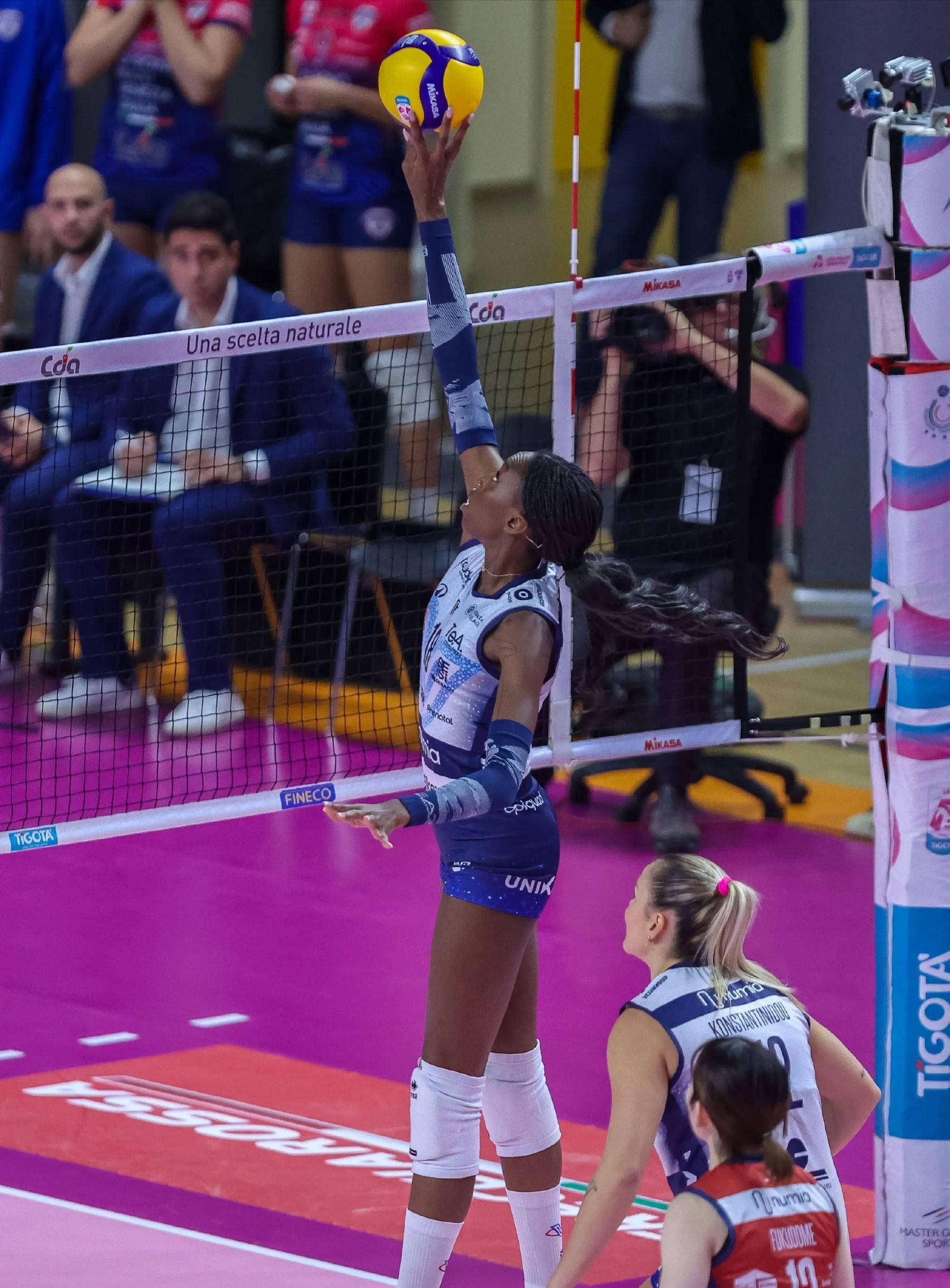 观察个人得分情况,蒙扎(米兰)队的达尔德罗普31次扣球,17次命中,无失误,1次被拦,2次拦网,0次发球失误,总共得到19分。艾格努44次扣球,17次命中,这个数据表明她还有进步的余地。然而,她依然凭借1次拦网和1次发球,合计得到19分,成为球队的关键得分手。