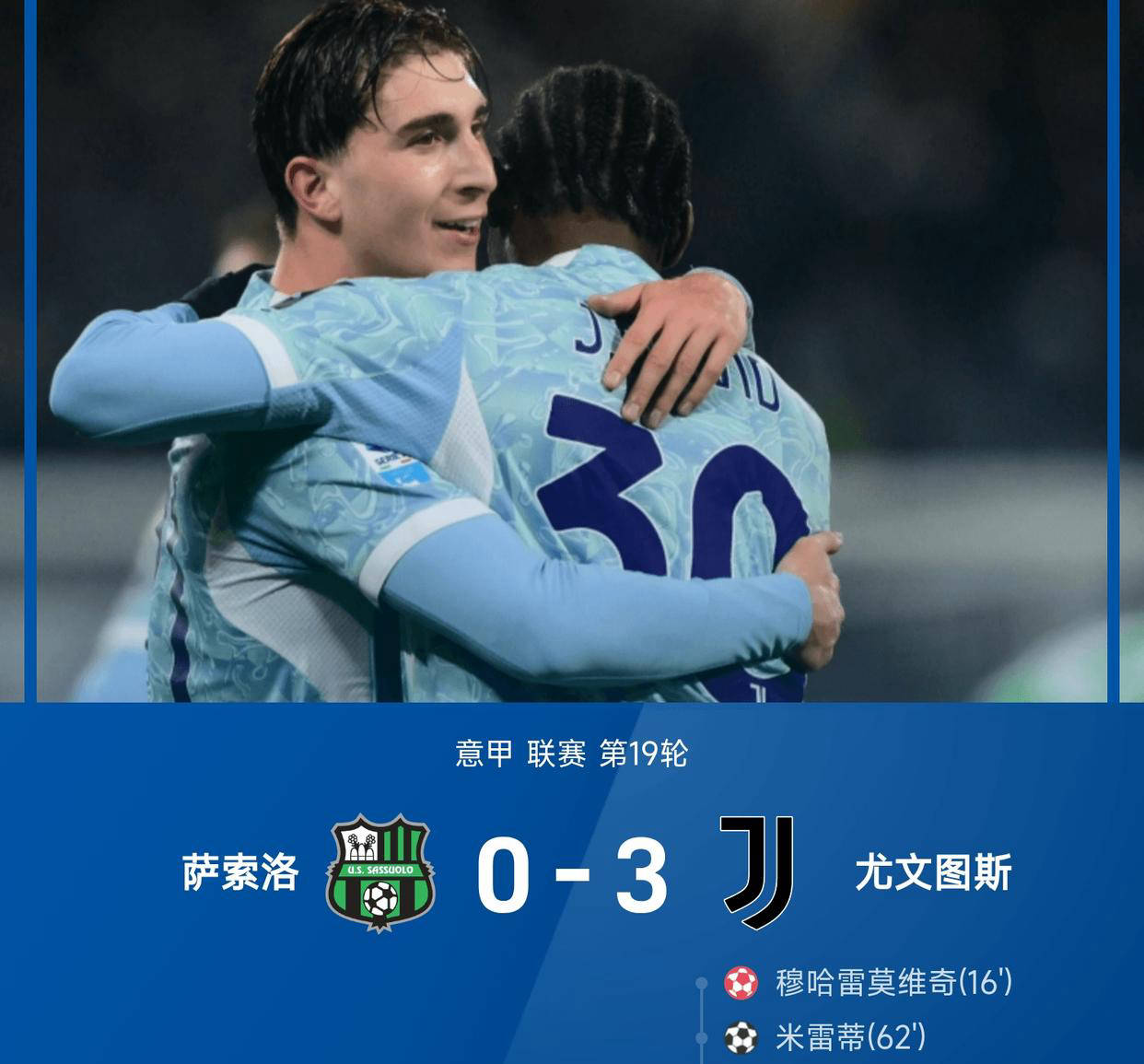 作为赛季表现最佳的升班马之一,萨索洛发挥稳定,但在面对近年来劲旅尤文图斯时显得捉襟见肘。上半场尤文借助一次乌龙球先拔头筹。随后的比赛中,尤文图斯多次组织有威胁的进攻,而萨索洛门将多次做出神勇扑救才能保持比分不过于悬殊。下半场伊尔迪兹和戴维联袂发力,迅速斩获两球,在短时间内奠定比赛走势。最终,尤文图斯凭借出色团队配合与高效进攻,以3-0在客场拿下萨索洛,巩固联赛前四位置。
