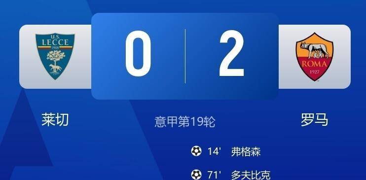 莱切在丢球后并非没有机会扳平比分,但罗马门将斯维拉尔的关键扑救力保球门不失。第三十九分钟,罗马的皮西利曾打入一球,但因越位在先被判无效。下半场,罗马继续施加压力。第七十一分钟,替补登场不久的皮西利在左路底线附近送出了一记力量十足的横扫传中,皮球直飞门前。中锋多夫比克及时赶到,抢在防守球员之前将球捅入网窝,将比分扩大为2比0,为罗马锁定了胜局。然而,这场胜利并非完美,多夫比克在进球后不久因伤被换下,为罗马的未来蒙上了一层阴影。罗马同样收获了36分,但由于净胜球劣于尤文图斯,暂时位列其后。